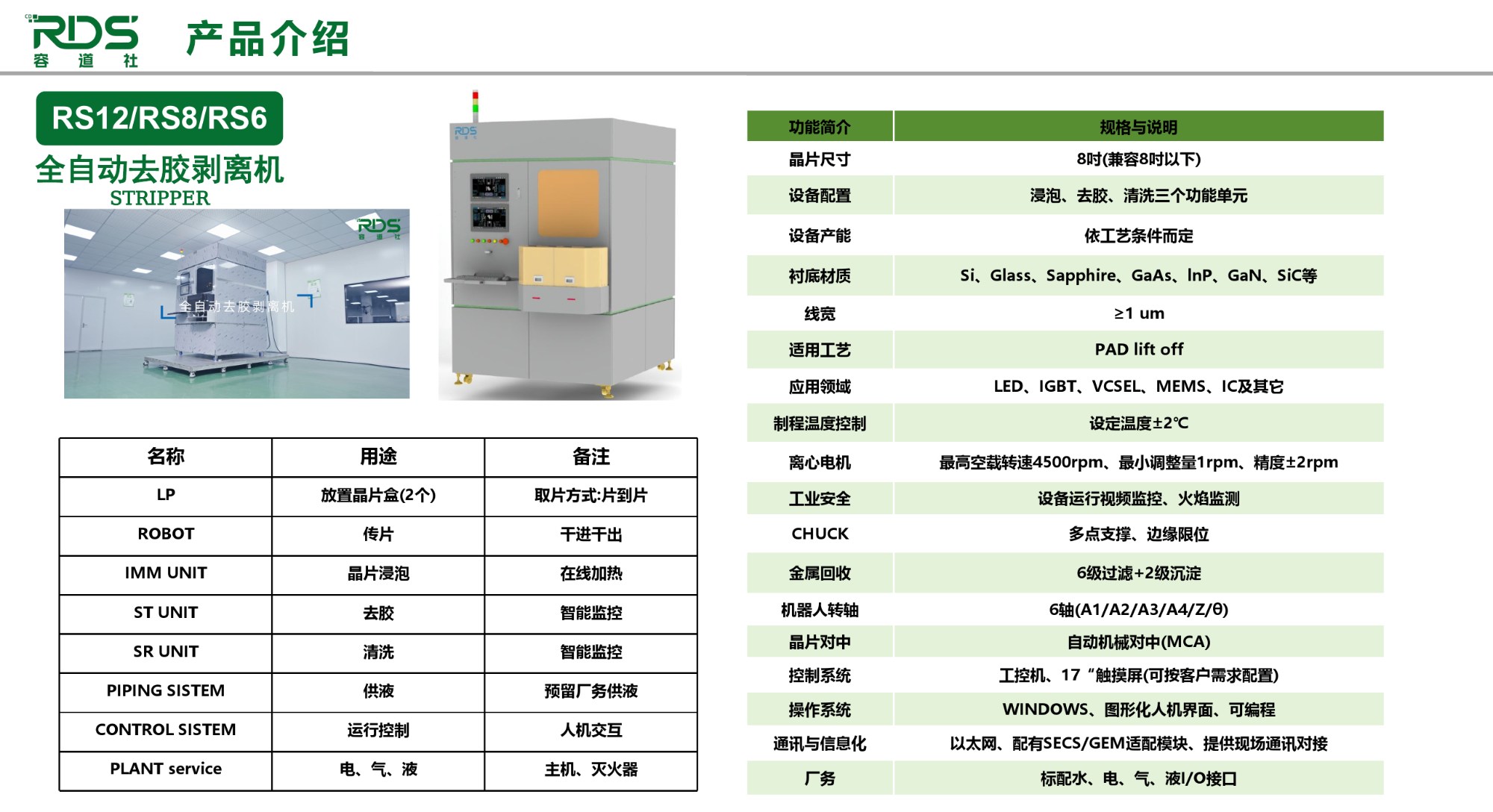 光刻机、涂胶机、喷胶机、显影机、金属剥离去胶机、湿法刻蚀机、清洗机、